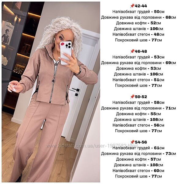 Подробное описание: Костюм зі штанами палаццо. Кофта на змійці, якісна фурнітура. По низу кофта