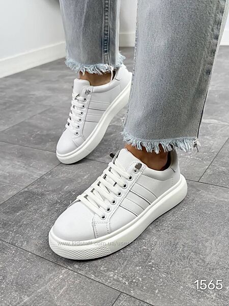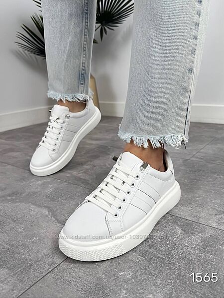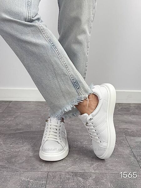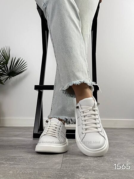 Кеди Aria Легкі та мʼякі Колір : білий Матеріал : натуральна шкіра Виробник : фабричний Китай Розміри : 36-41 Висота підошви : 4 см 36 - 23 см 37 - 23,5 см 38 - 24 см 39 - 24,5 см 40 - 25,5 см 41- 26 см