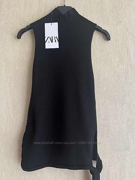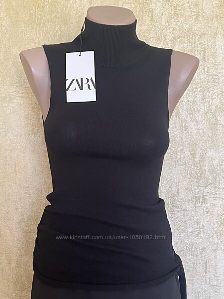 Топ без рукавів з високим коміром Zara. Розмір XS.Склад тканини: 70% віскоза, 30% поліестер. Дуже приємна на дотик. Гарно тягнеться.