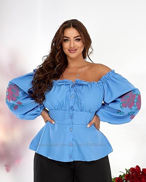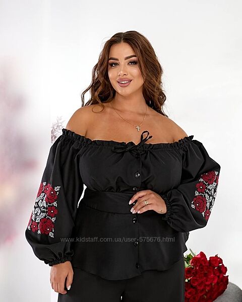 Подробное описание: р.48 до 62р. Блуза з вишивкою тонка костюмка