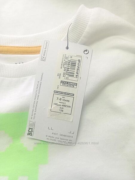 Подробное описание: Біла футболка m&s на хлопчика 7-8 років