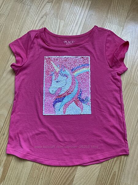 -- Футболка рожева з єдинорогом з пайєтками Children place - 110 грн