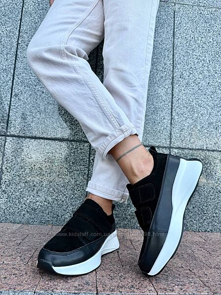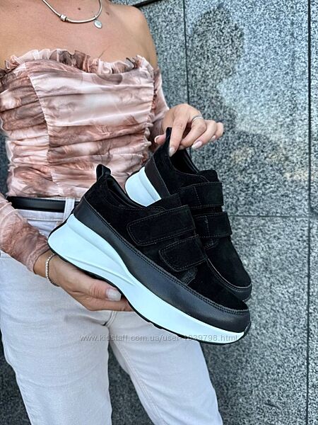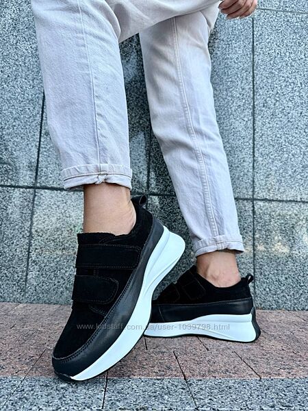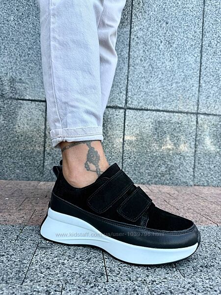 Кросівки Матеріал : НАТУР. ЗАМША/НАТУР ШКІРА Колір:чорний Підошва: 4,5 см/2 см Р-сть:36-41