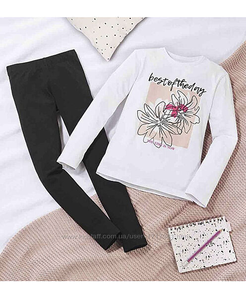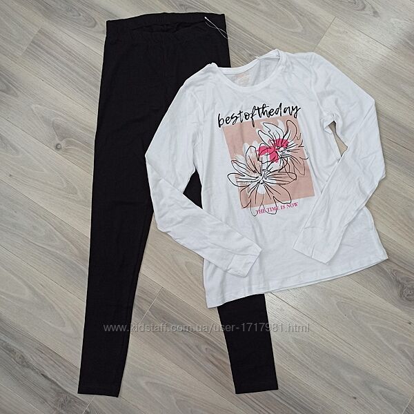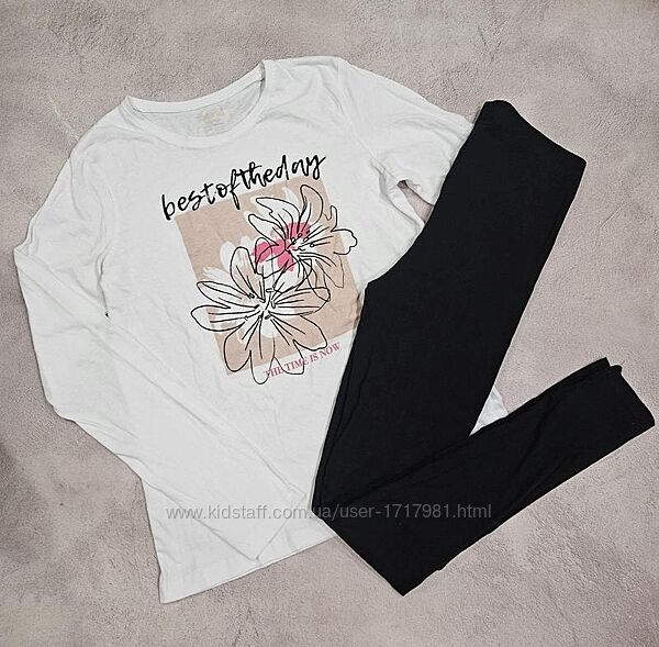 Размер на бирке: 146-152 см (10-12 лет) и 158-164 см (12-14 лет).Демисезонная пижама от немецкого бренда Peppperts® состоит из лонгслива и лосин.