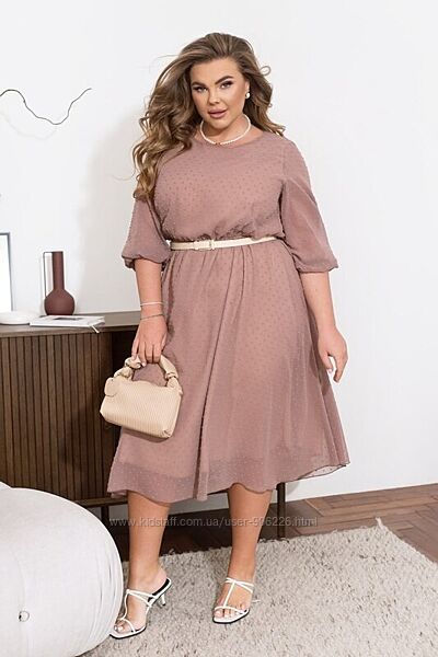 Ця однотонна сукня з легкого шифону – уособлення елегантності та ніжності. Її напівкруглий виріз горловини та відрізна талія з виточками створюють жіночний силует, підкреслюючи фігуру. Плісовані оборки додають легкості кожному руху. Верхній шар – напівпрозорий шифон, що виглядає повітряно та витончено, а підкладка забезпечує комфорт у носінні. Довгі рукави 3/4 без підкладки не обтяжують образ, а резинки на зап’ястках додають легкий акцент. У комплекті йде пояс, який допоможе ще більше акцентувати талію. Ідеальний вибір для теплих вечорів, побачень та стильних літніх прогулянок