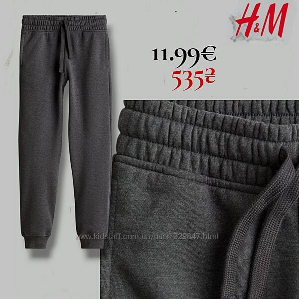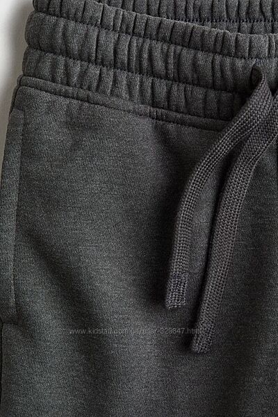 Фото 4-6 Темносірі, H&M.Наявність. Спортивні штани з м´якої бавовни з м´яким начісованим внутрішнім шаром. Еластичний пояс зі шнурком, бічні кишені та ребристий низ. Злегка звужений крій.