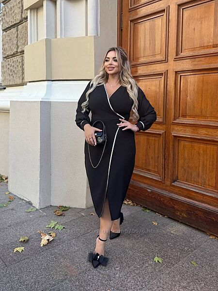 р.46 до 60р. Сукня з імітацією запаху з срібним кантом крепкостюмка