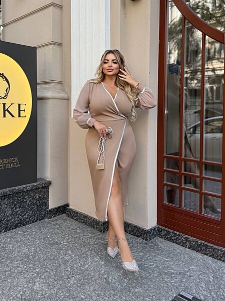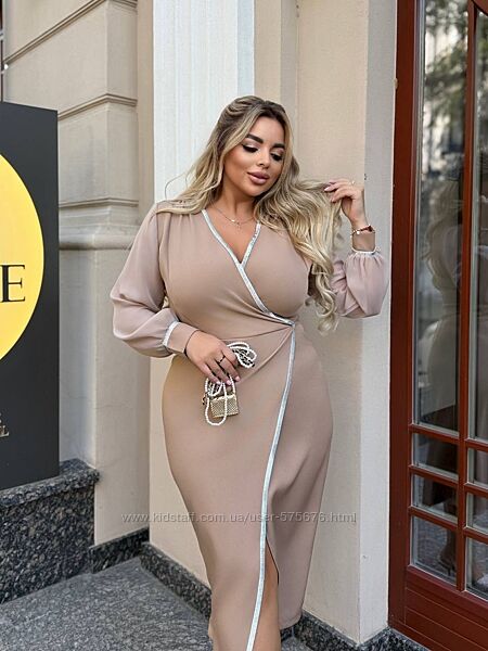 Подробное описание: р.46 до 60р. Сукня з імітацією запаху з срібним кантом крепкостюмка