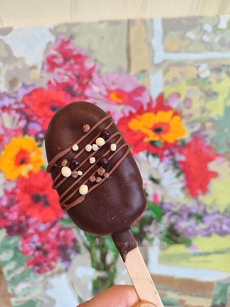 Тістечко в глазурі у форматі ескімо – це поєднання улюбленої класики та сучасної подачі. Ніжна шоколадна або ванільна маса з ніжним кремом, вкритa тонким шаром хрусткої глазурі, дарує справжню насолоду з першого укусу.Зручна форма на паличці робить десерт стильним, оригінальним і практичним – ідеальним для кави-брейку, вечірки чи просто солодкої миті для себе.