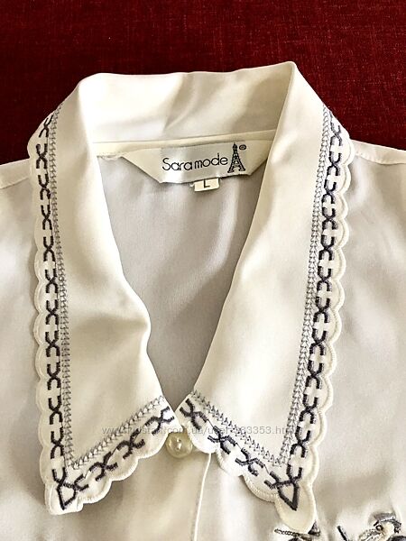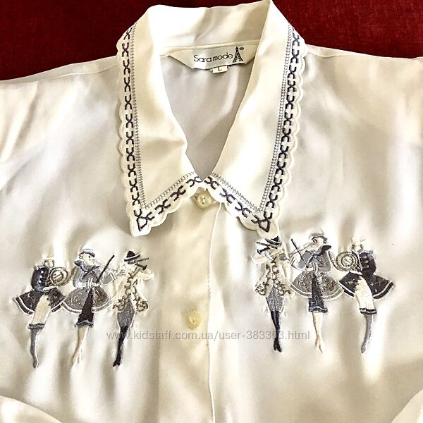 Молочная вышитая блузка -музыканты. 5052