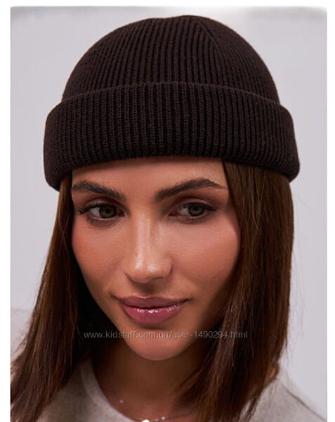 Подробное описание: Шапка женская короткая с отворотом темный шоколад