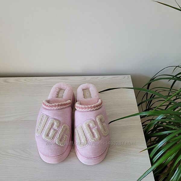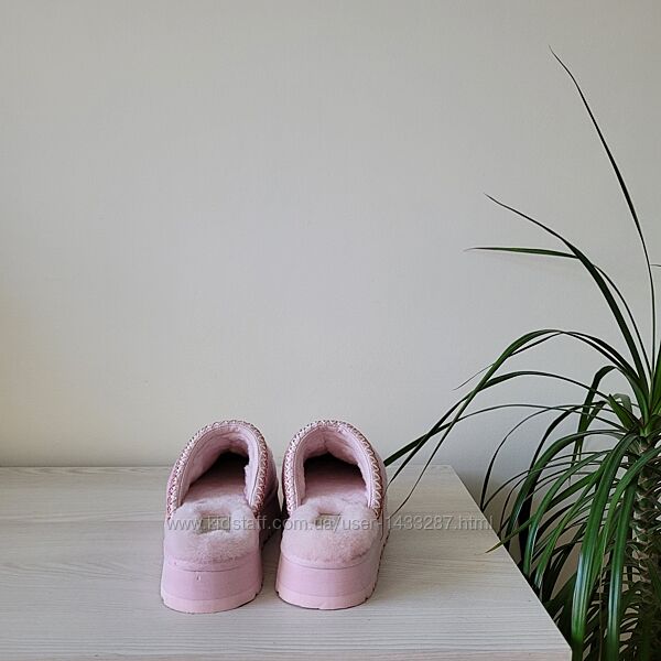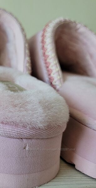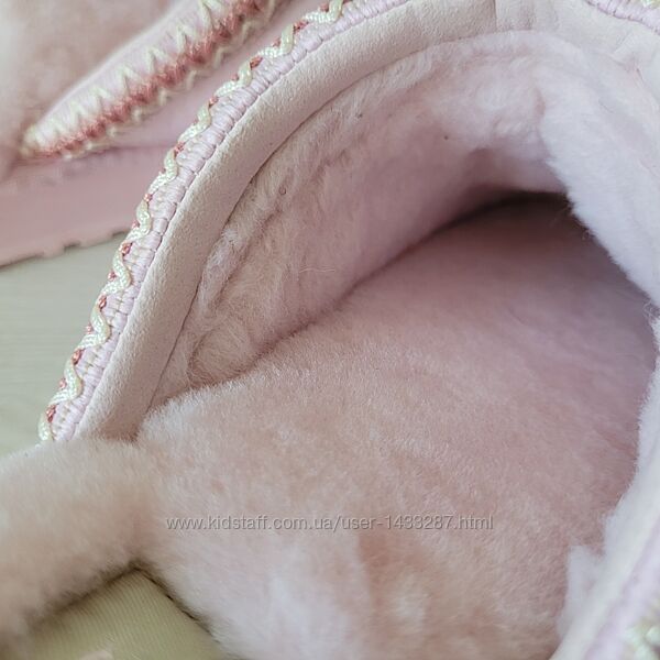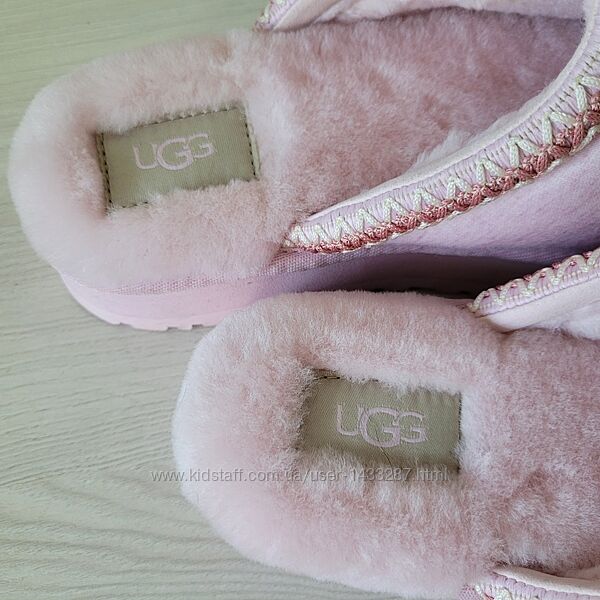 Верх текстильний + назва бренду об´ємна, бахрамиста Устілка із натурального хутра Підошва легенька, хоч і масивна Колір світло - рожевий Спокійно підходять як і для вулиці, так і для дому Бірки всередині немає, модель виставкова