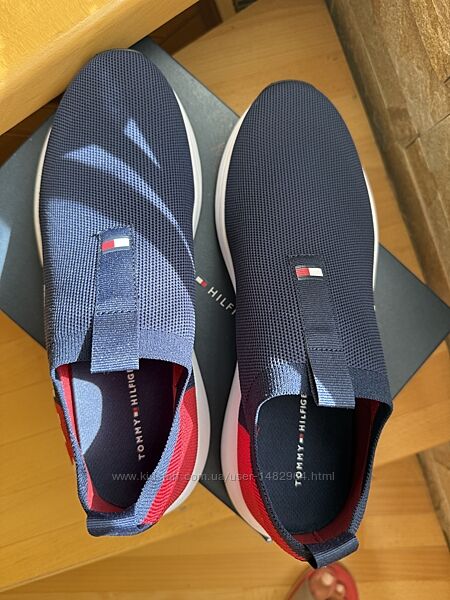 Стильні легенькі снікерси Tommy Hilfiger. Синій колір, фірмовий логотип.Мають зручну конструкцію з еластичною вставкою, що дозволяє легко знімати і одягати.