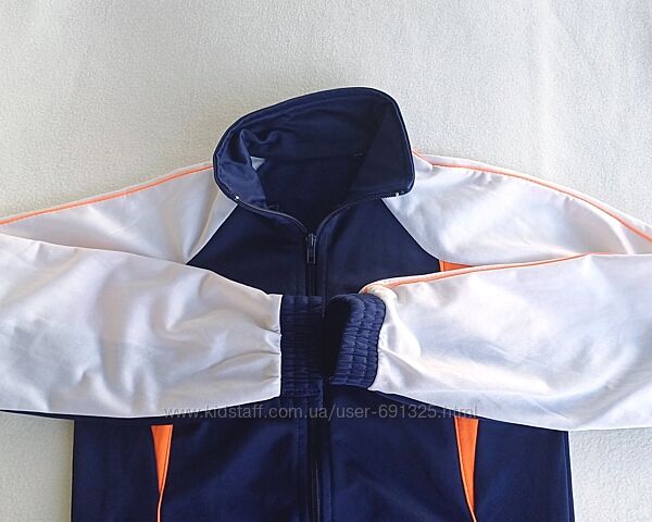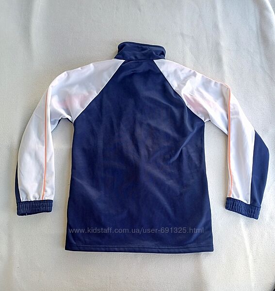 Пропоную синю з білим кофту олімпійку. Матріал поліестр, всередині тонкий начос. Уживана в школу акуратно, стан відмінний, дефектів немає, дивіться фото.Є також сині спортивні штани, дивіться мої пропозиції.