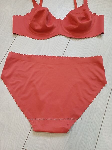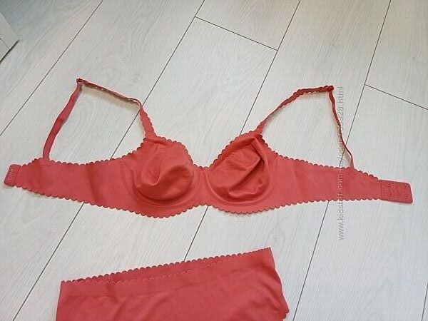 У продажу комплект білизни від французького бренду білизни Dim, лінійка Body Touch. Гарний кораловий колір. Бюстгальтер у розмірі 80В, трусики урозмірі 40.