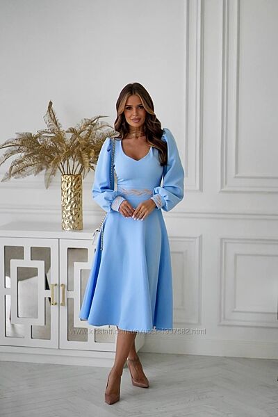 Подробное описание: 7559 Сукня з вишивкою на талії та манжетах. Вишукана сукня довжини міді з