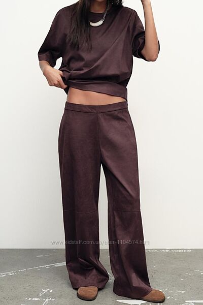 Костюм бургунді zara зі штанами палаццо розмір M та Lтканина штучна замша, приємна до тіла 90% polyester, 10% elastane