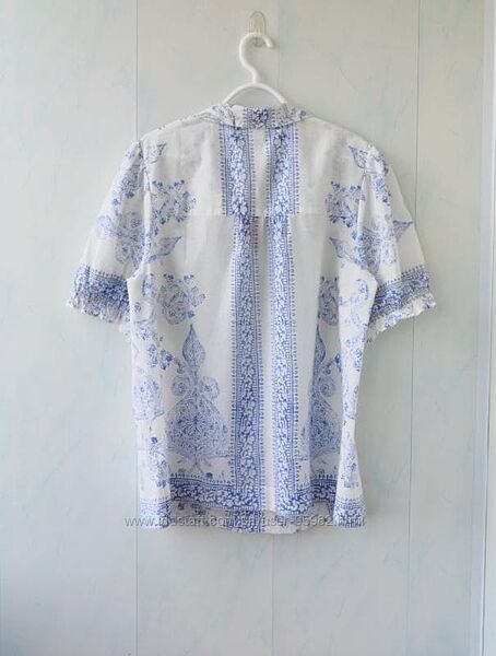 Ніжна, невагома сорочка Monsoon, легка, вільного крою, приємна до тіла, якість тканини чудова, 100% бавовна. Колір не білосніжний, легкийайворі. На грудях є виточки. Комір і край рукава прикрашені ніжною,