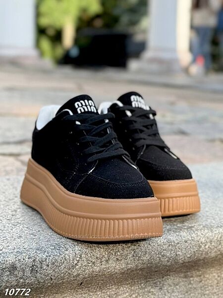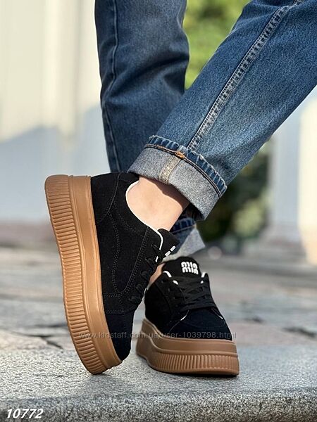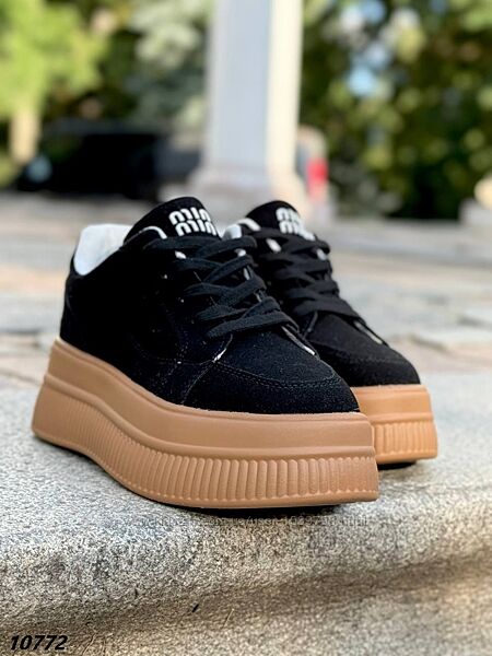 Кеди Матеріал еко замша Колір чорний На шнурівці Висота від п´яти 7 см Висота підошви позаду 5,5 см , попереду 4 см Виробник Фабричний Китай