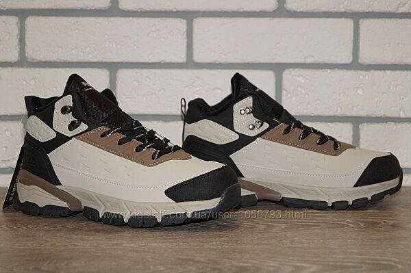 Пошиті із якісного штучного нубука. Всередині густе і тепле хутро. Носочок і задник посилений. У підйомі – зручна шнурівка, Ви зможете відрегулювати модель під себе. Підошва досить товста та легка, із глибоким, чіпким протектором.