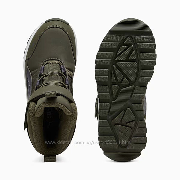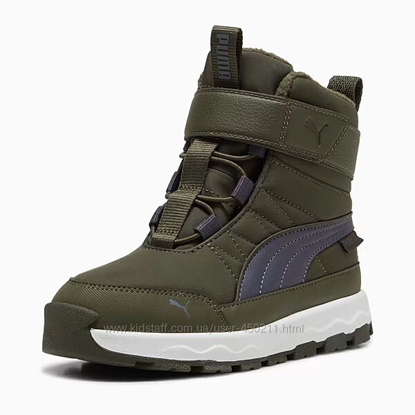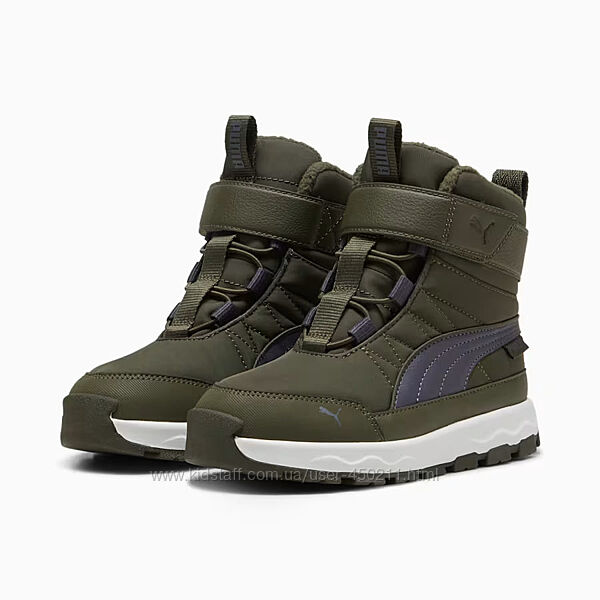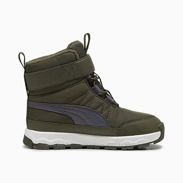 Puma Evolve — це нова колекція для дітей. Завдяки численним силуетам, створеним для активного способу життя та різних пір року, ці черевики витримають будь-які пригоди дитини протягом усього дня як під час ігор, так і відпочинку, а також підходять для будь-яких видів активності в холодну погоду. Це стильне зимове взуття з водовідштовхувальним верхом, розробленим для динамічного й активного способу життя. Воно оснащене еластичними шнурками й застібкою-липучкою для ідеальної посадки. Крім того, черевики мають міцну гумову підошву.