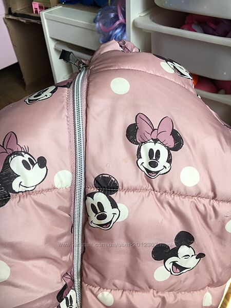 Куртка з мінні Маус H&M на 3-4 роки 104 см . Із нюансів є попереду плямки показано на фото.Півобхват грудей 36 см .