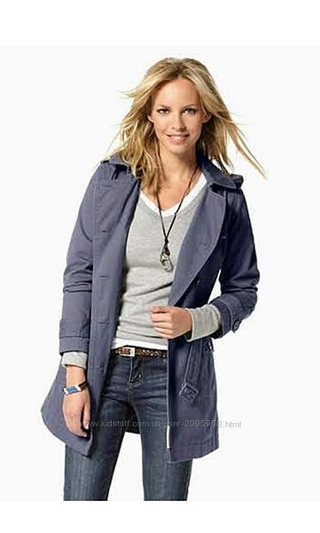 Подробное описание: Плащ тренч осінній синій з капюшон демісезонний бавовна