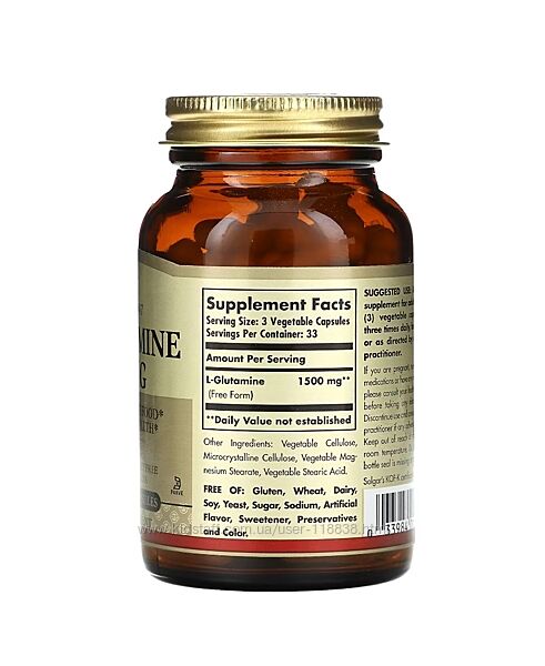 # Solgar, L-глютамин, 500 мг, 100 растительных капсулОПИСАНИЕ: