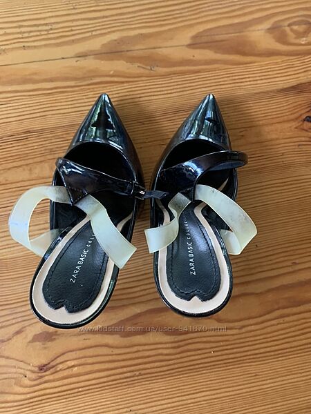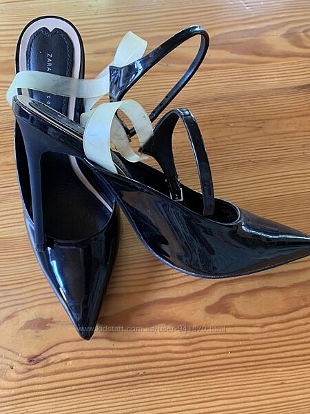 Продаю лакові босоніжки Zara розмір 37. Шпилька, селіконова стрічка на пʼяту та ремінь застібка.пересилаю, повернення немає, оплата на картку