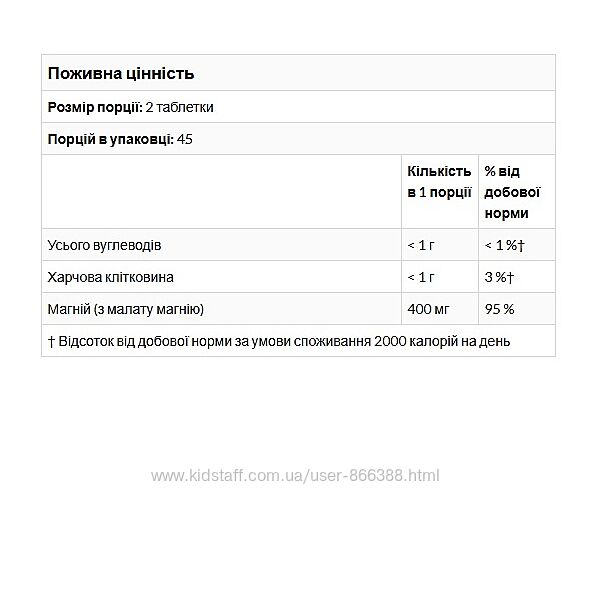 Подробное описание: KAL, малат магнію, 400, 90 таблеток 200 мг в 1 таблетці