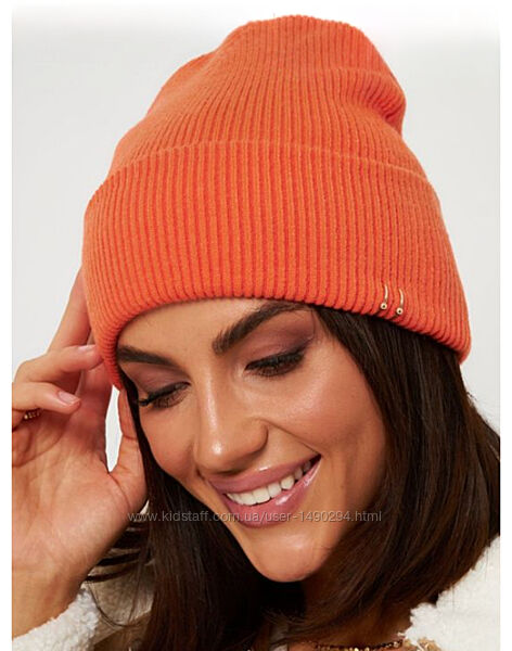Подробное описание: Шапка женская демисезонная с отворотом Орбит оранж