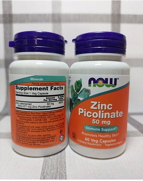 Now Foods, пиколинат цинку 50 мг, 60 кап та 120 капсул
