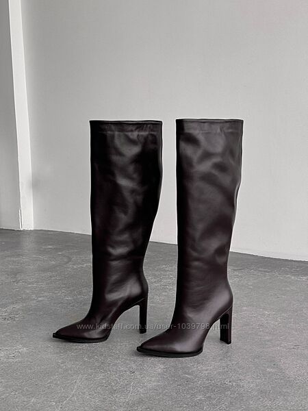 Подробное описание: Демісезонні чоботи труби на підборах -LIRIO-, натуральна шкіра. Україна