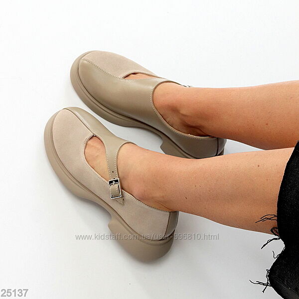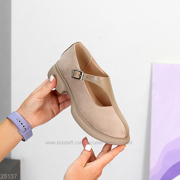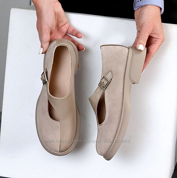 Подробное описание: Дизайнерські туфлі бежеві натуральна шкіра замша низький хід