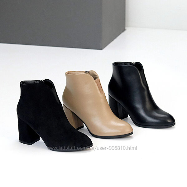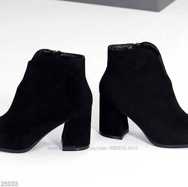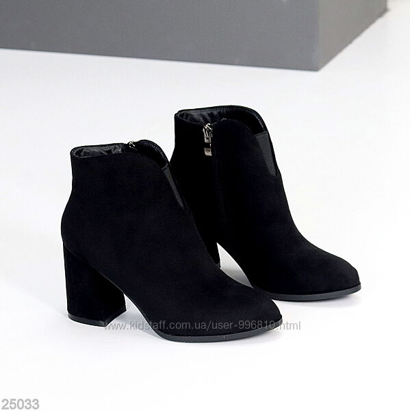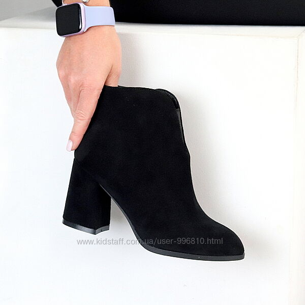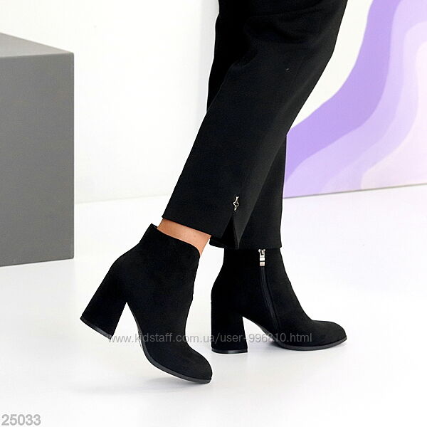 Подробное описание: Чорні замшеві ботильйони зручний середній каблук лаконічний дизайн