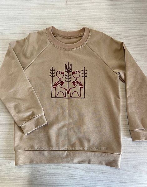 Дитячий світшот з вишивкою на зріст 122-128Фото 1 - колір - кава з молоком