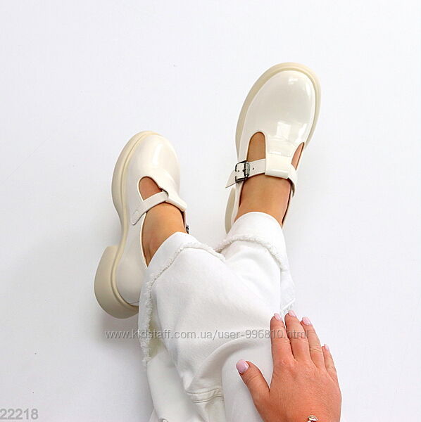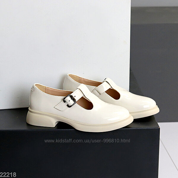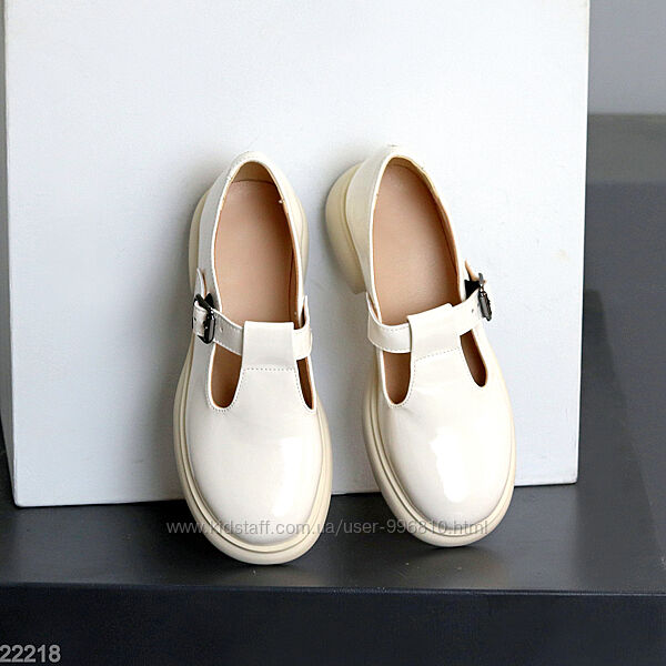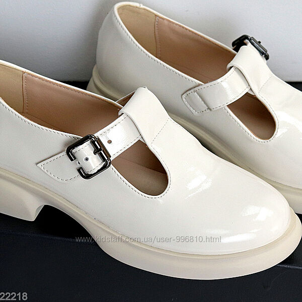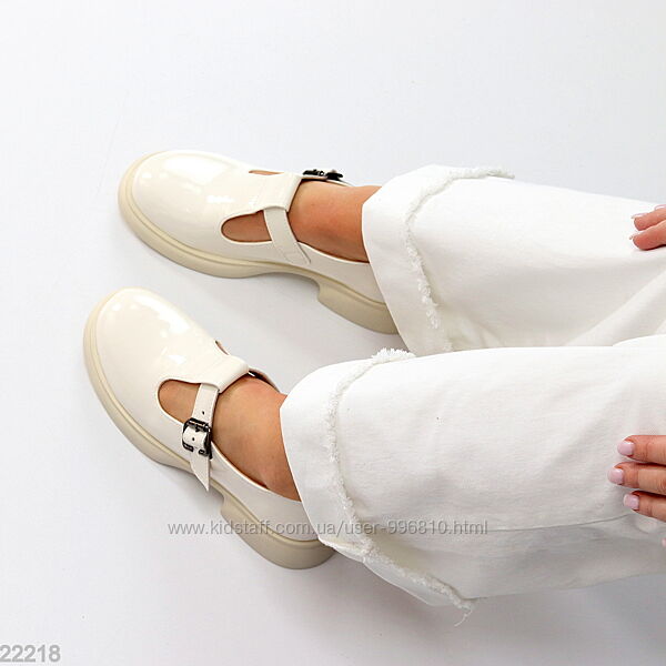 Подробное описание: Світлі лакові демі туфлі на ремінці натуральна шкіра глянець 9кольорів