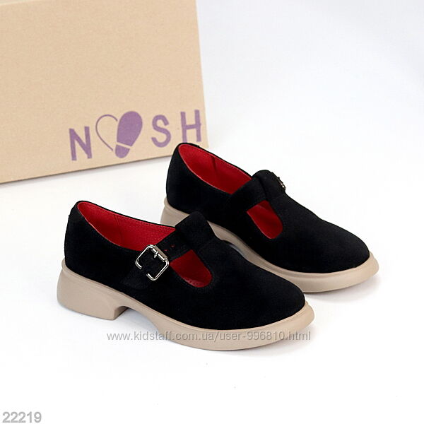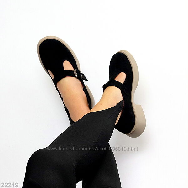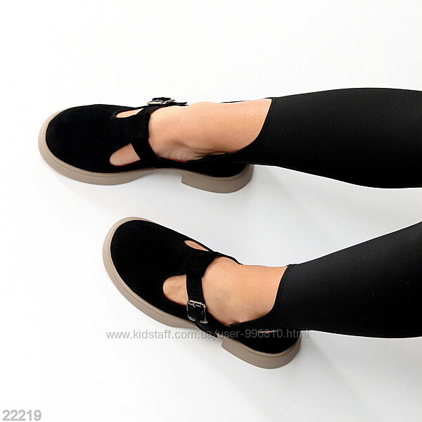 Подробное описание: Чорні замшеві демі туфлі на ремінці натуральна замша низький хід