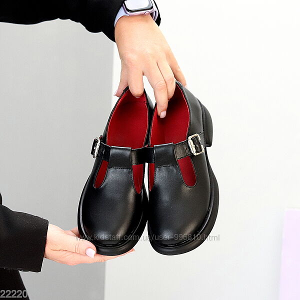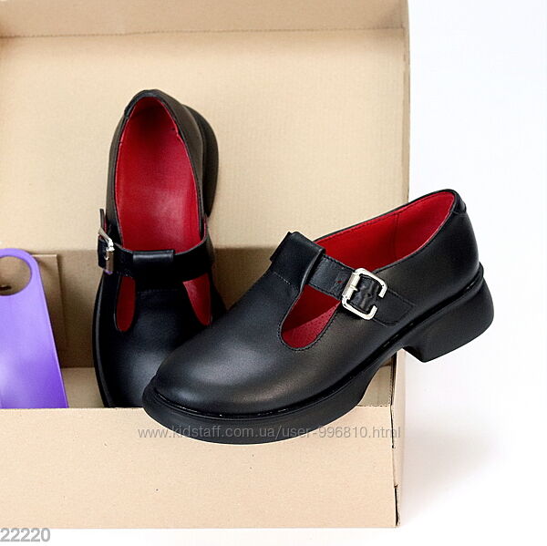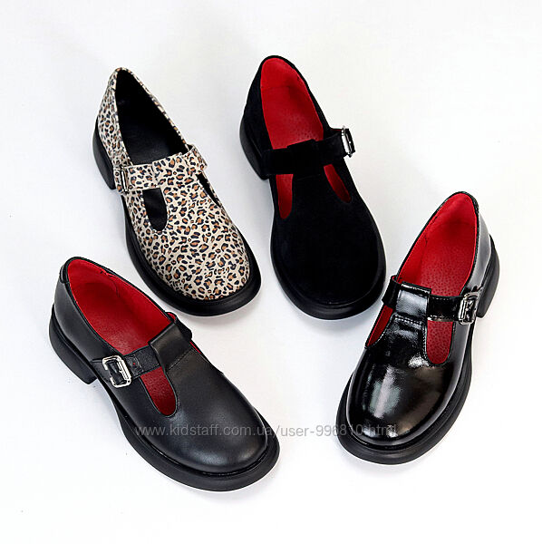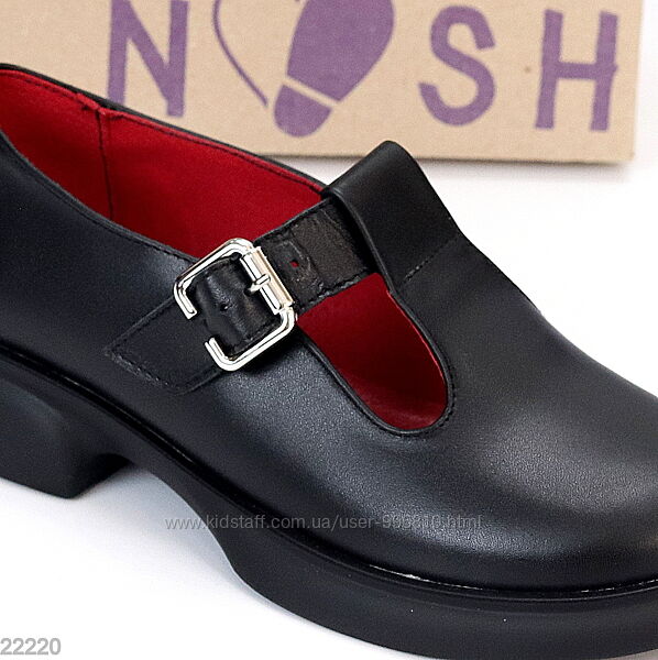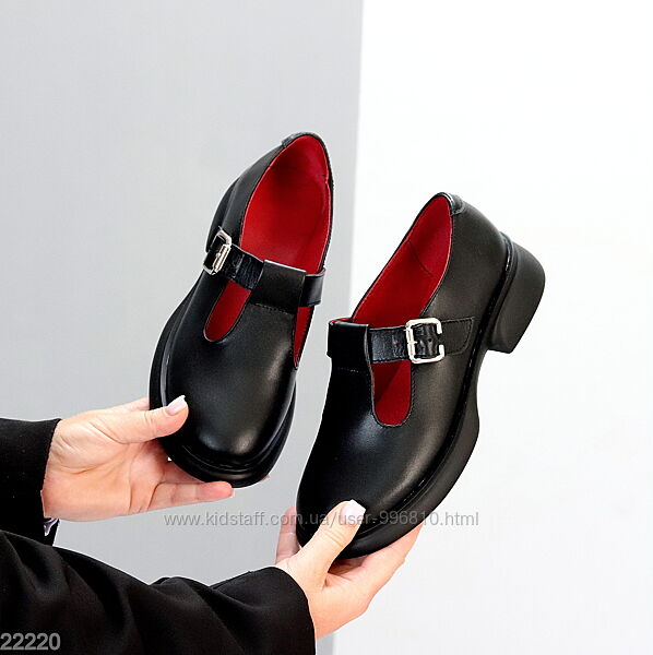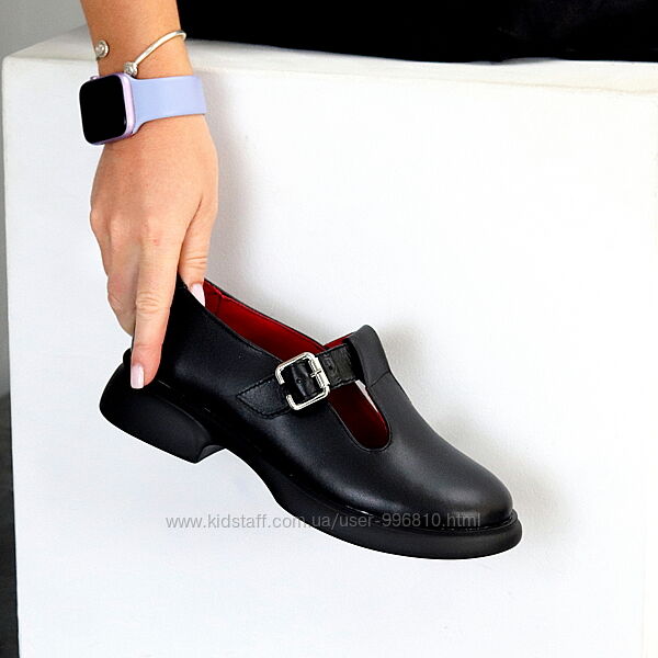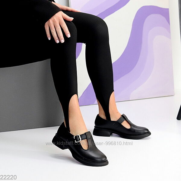 Подробное описание: Чорні шкіряні демі туфлі на ремінці натуральна замша низький хід