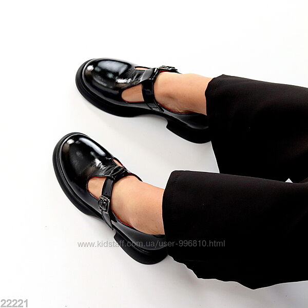 Подробное описание: Чорні лакові глянцеві демі туфлі на ремінці натуральна шкіра глянець