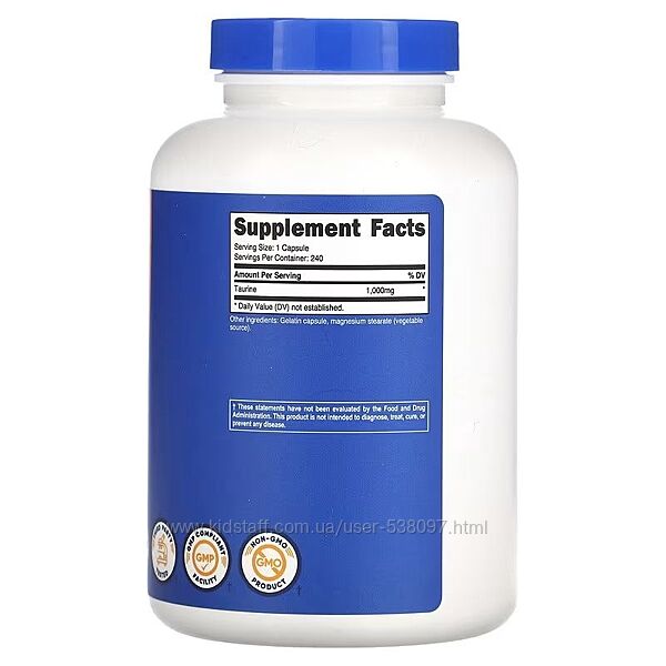 Подробное описание: Nutricost таурин. 1000 мг, 240 капсул