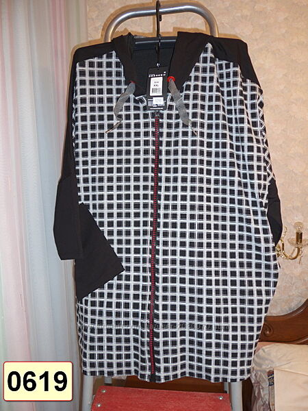 довжина 89см, об´єм грудей 190см, об´єм стегон 168см, довжина рукава 50см.