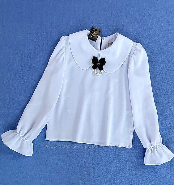В наявності ✅️ 128,134,140,146,152.Блузочка дитяча біла. Брошка в комплекті.