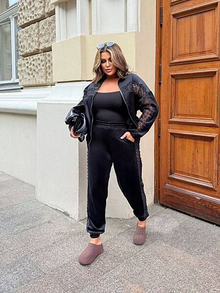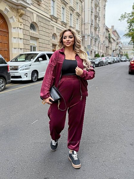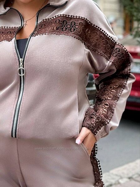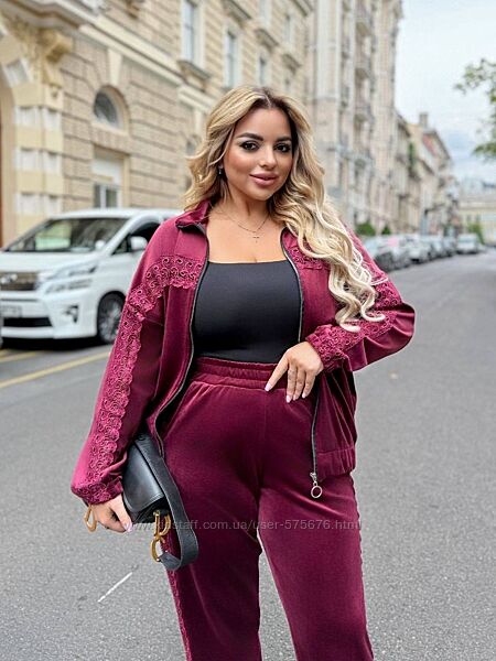 Подробное описание: р.48 до 58р. Оксамитовий костюм з мереживом