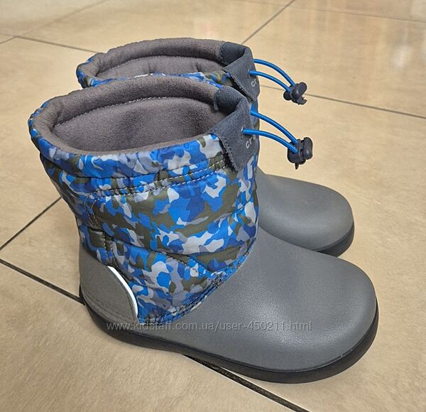 Продам чоботи дитячі Crocs Crocband LodgePoint Graphic Snow Boots, 100% оригінал з офіційного сайту. Стан ідеальний, взуті декілька разів.Розмір US С 13, EUR 30-31 ( устілка 19,5-20 см)