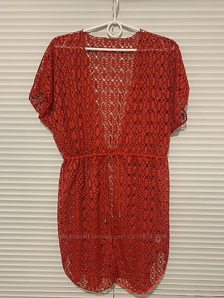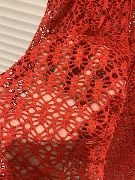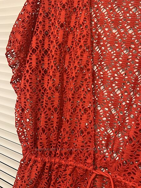 Подробное описание: Яркое красное платье-халатик туника пляжная кружево гипюр