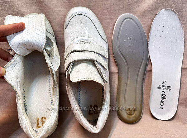 927. Дуже! м´які, гнучкі, легкі та комфортні кросівки, спортивні туфлі німецького бренда "Longo" в ідеальному стані: біленькі, чистенькі, устілка- білосніжка, підошва без зносу - може, раз-два взуті.Не тільки дуже комфортні, а ще й гарні зовні: перламутр та срібні крапочки