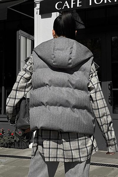 Утеплений жилет з наповнювачем з лебяжого біопуху. Прямий силует, висока с
