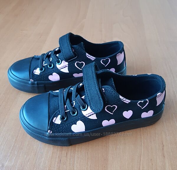 Кеды Nelli Blu чёрные с нежно-розовыми сердечками 28 р. стелька 18 см