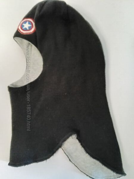 Після моєї дитини. Шерстяний шлем з утепленням. Підкладка котон. Утеплювач холофайбер Зимовий. Колір чорний, з емпблемою капітан Америка.Розмір 2 на голову 50-53 см